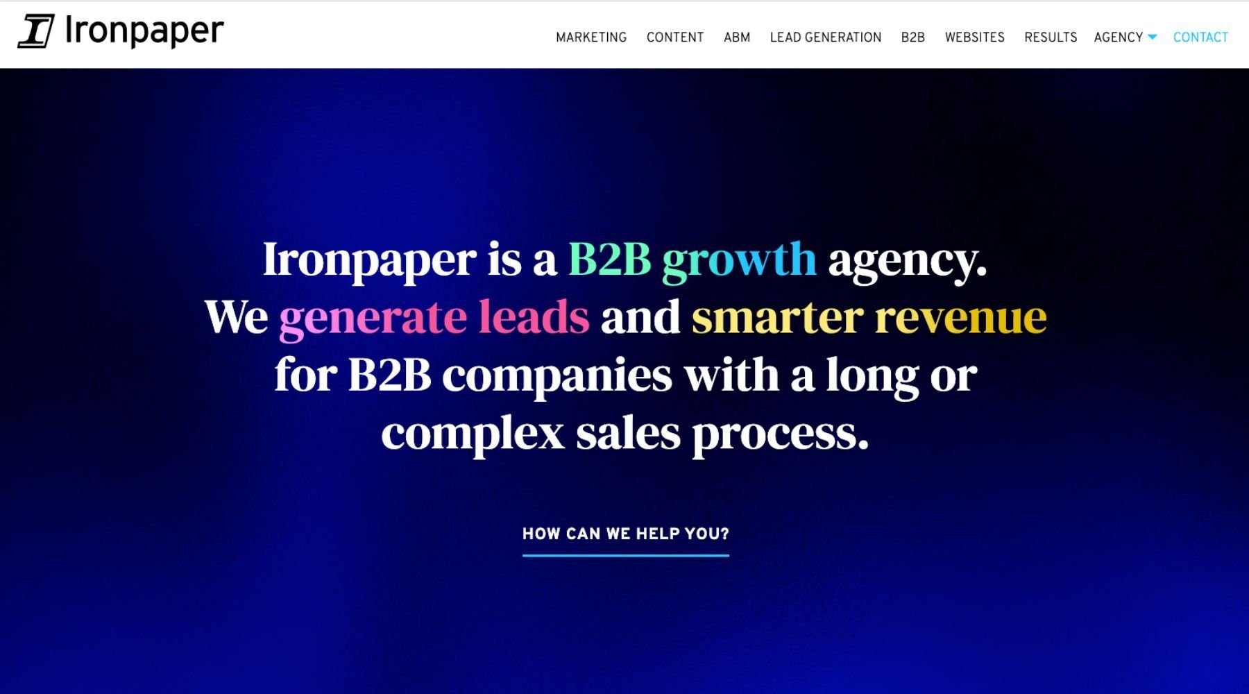 Ironpaper is a B2B website design and marketing agency that creates websites focused on acquiring and nurturing qualified leads rather than just looking beautiful. Founded in 2003 and headquartered in New York City with a team of 70 specialists, they build websites exclusively for B2B companies with long sales cycles.
