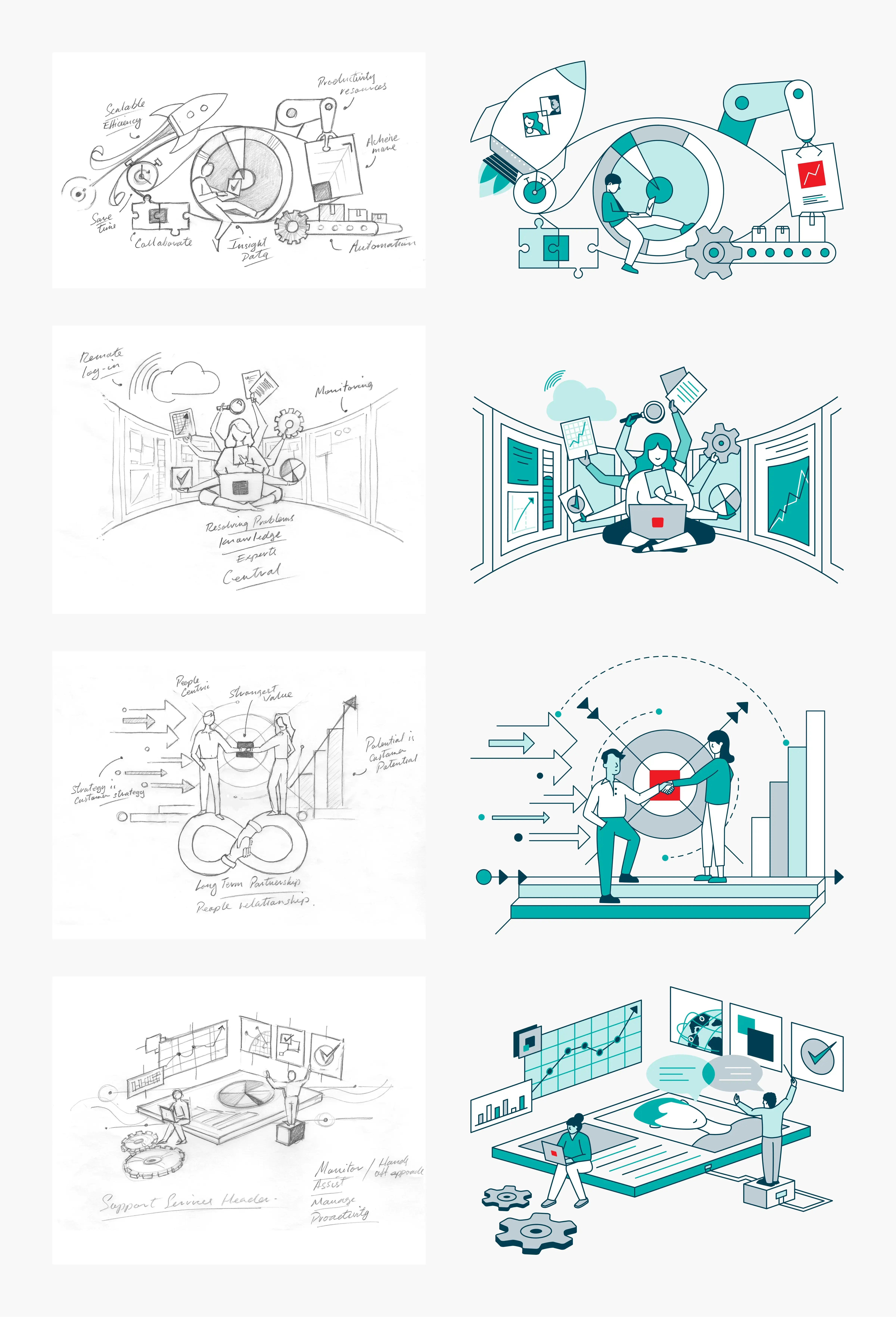 As part of Datel’s wider brand transformation, we created a suite of bespoke hand-drawn illustrations—each one crafted to represent key services, value propositions, and ideas in a uniquely expressive way. These illustrations became an integral part of the brand and the digital experience.