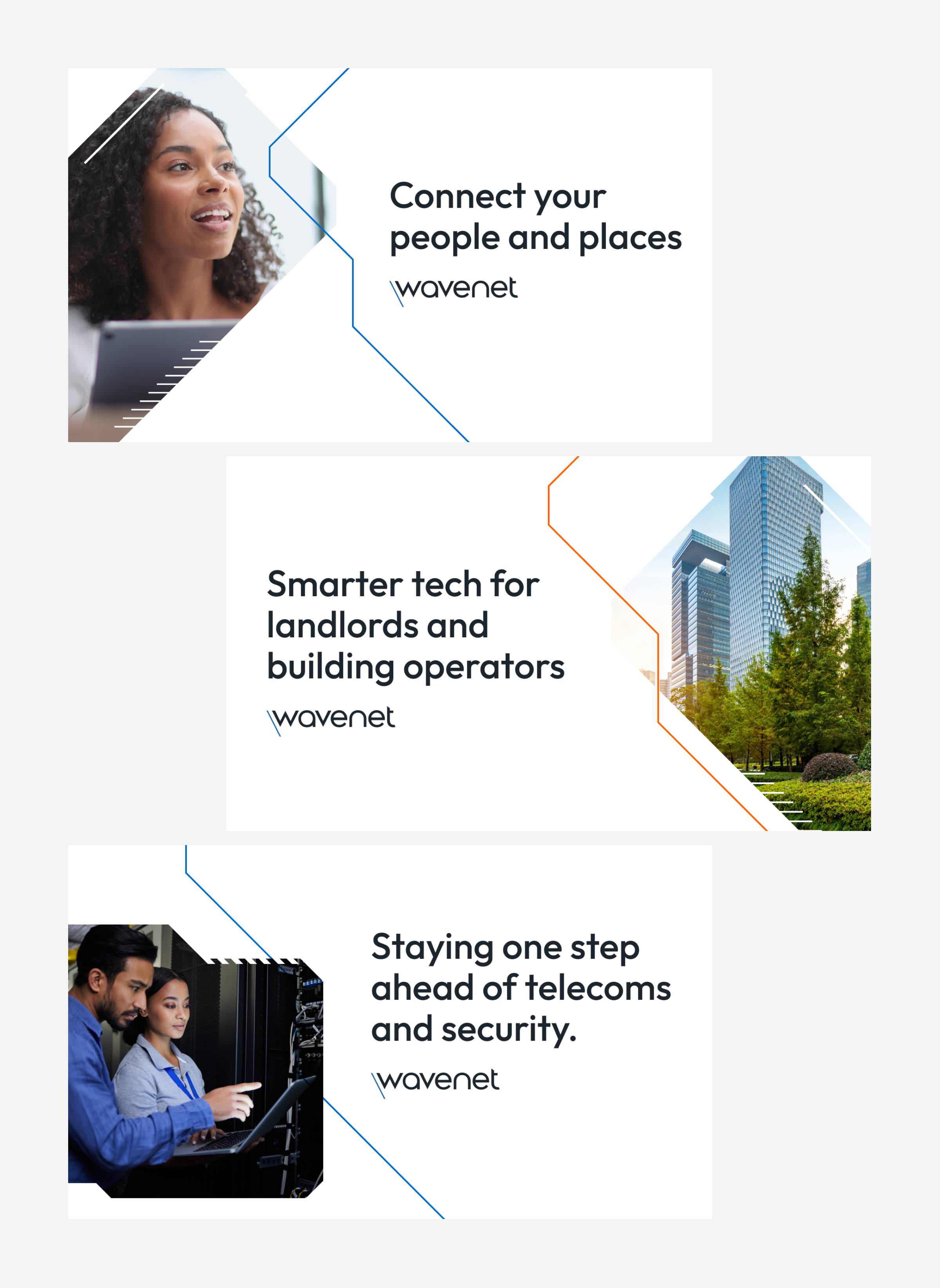 Following several recent acquisitions, Wavenet needed to integrate several identities into their brand. It was crucial to maintain the familiarity of the original brands while seamlessly incorporating them into Wavenet. To acheive this, we deployed Wavenet's distinctive logo typeface distinctive logo typeface into their solutions, ensuring a consistent visual identity.